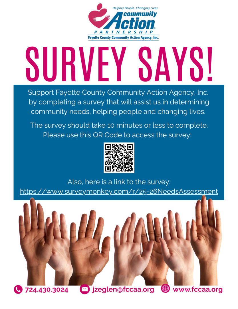 We need your help! We’re conducting a community needs assessment – your feedback will assist us in determining community needs, helping people and changing lives!